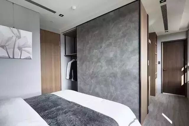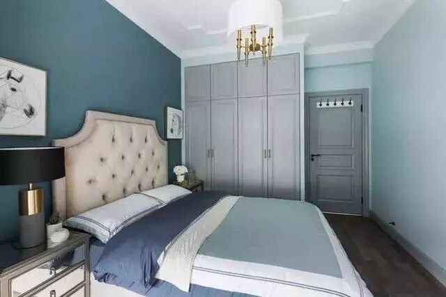 或者是在卧室内选择一个和房间门相互呼应的设计,比如衣柜、床品等,灰色调的房间门和衣柜颜色一致,搭配小清新的墙面色彩,让人感觉优雅大方。