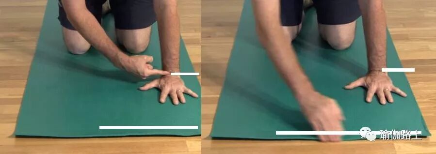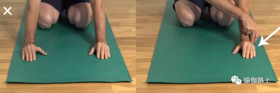 让手摆正,可以让手腕的折痕,与垫子前端平行即可