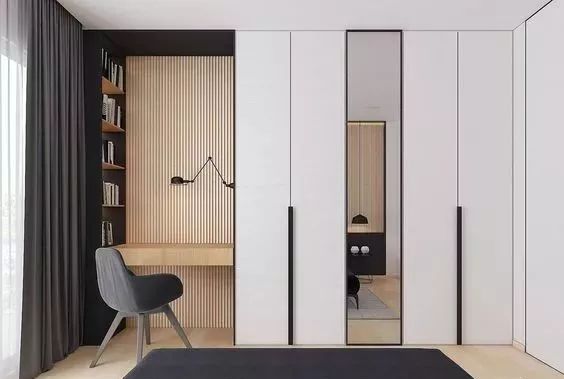 将门和柜子融为一体也能达到不错的隐形效果,衣帽柜或储藏柜都是不错的选择;