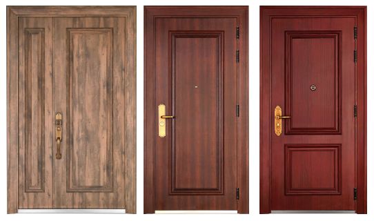 钢木结合的防盗门,是通过中间的钢板来防盗的,表面做免漆或者油漆处理。