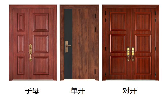 平开式防盗门从形式上又分为:普通平开门、门中门、子母门、双开门和复合门。