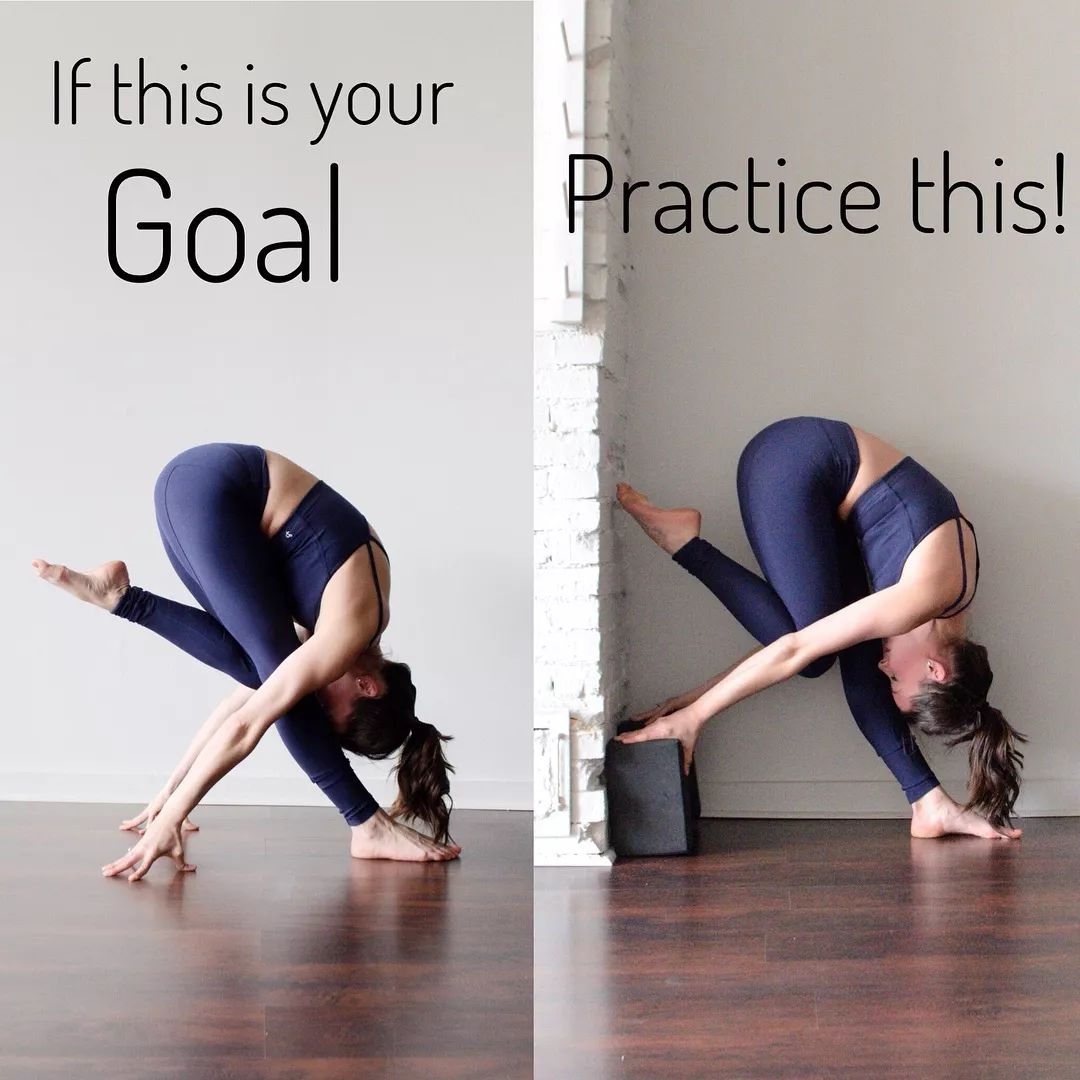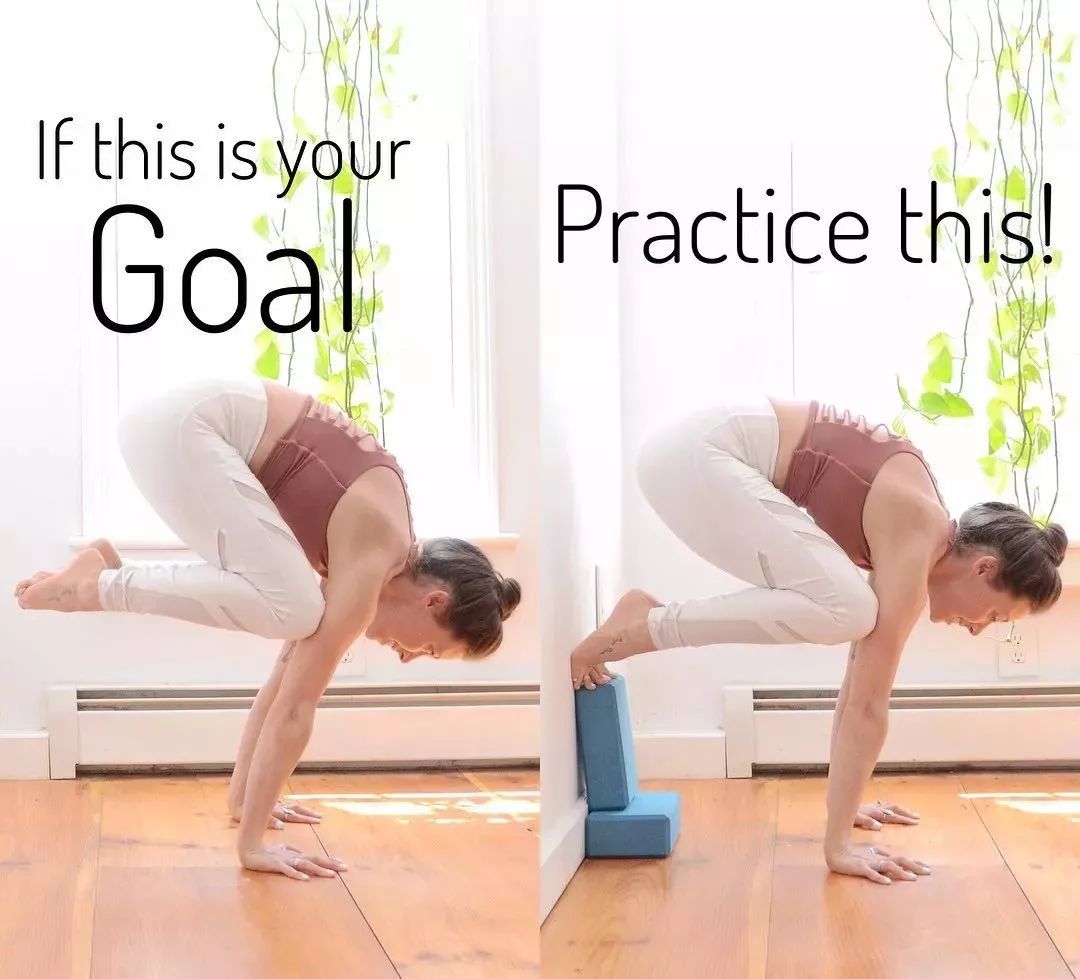 可以借助墙壁和瑜伽砖练习