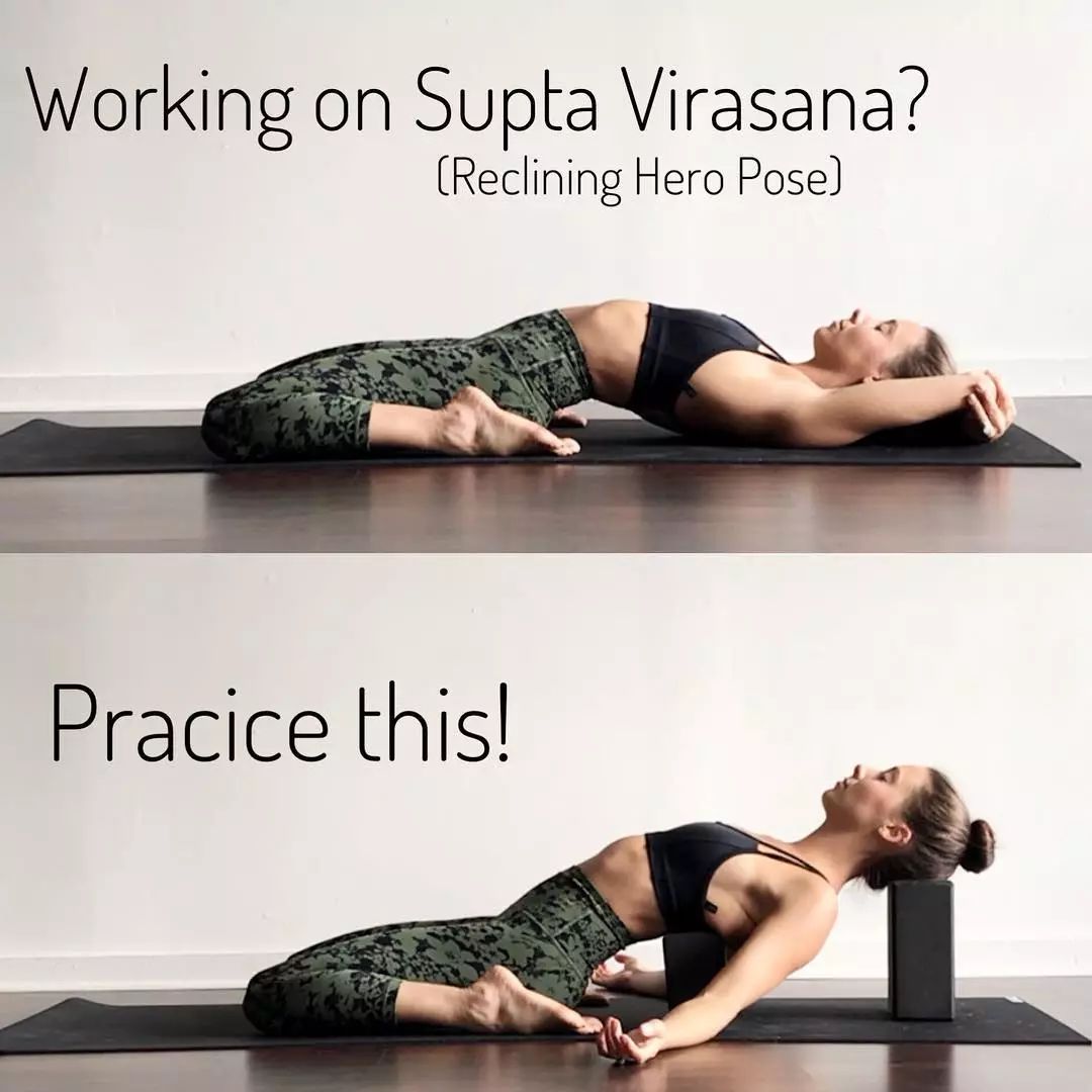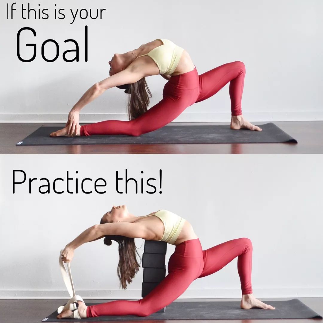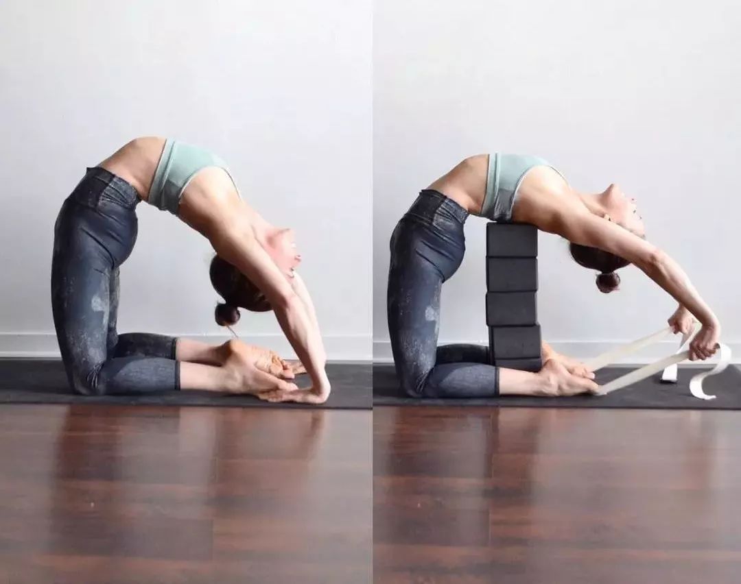 骑马式后弯可以借助瑜伽砖和伸展带
