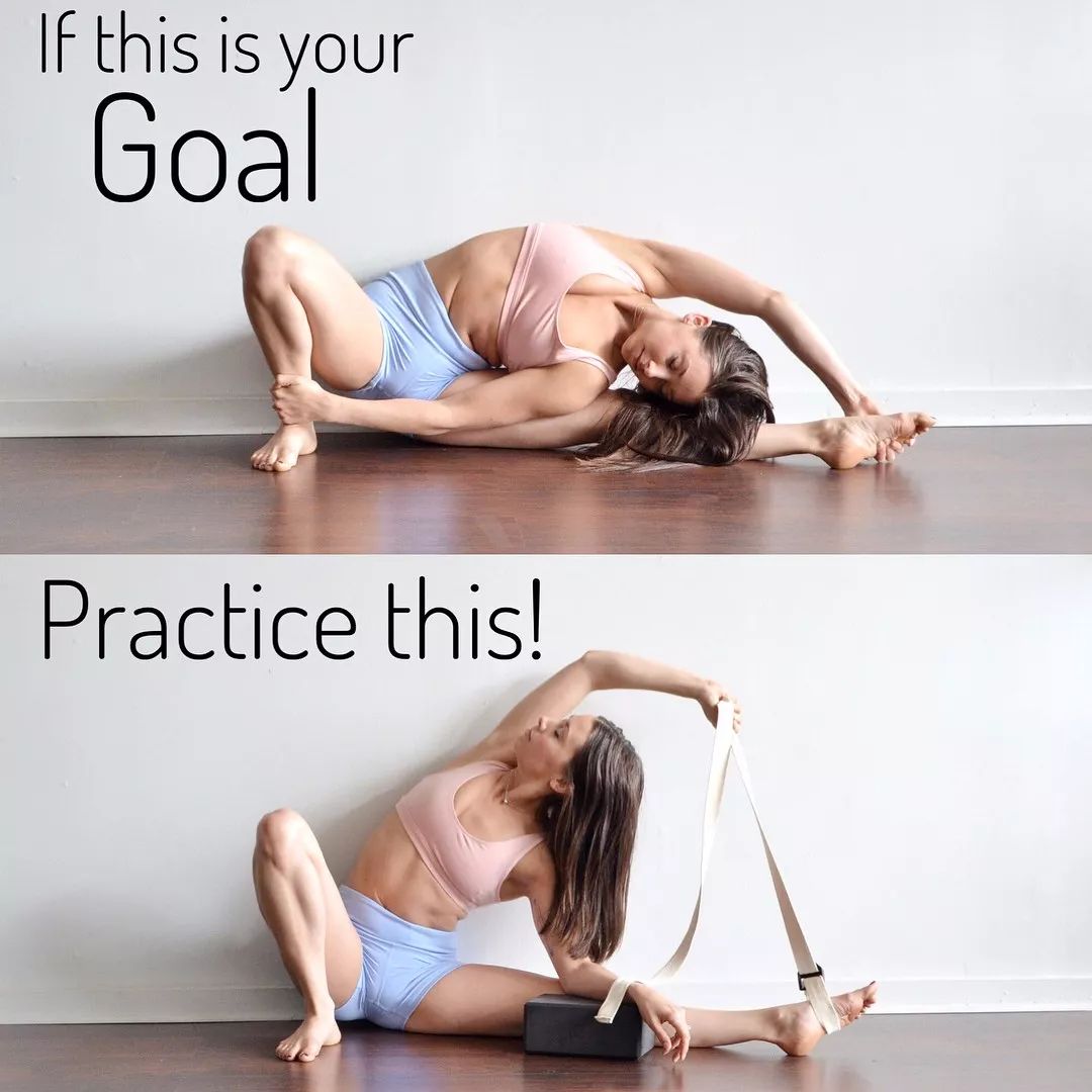 可以先借助伸展带和瑜伽砖练习