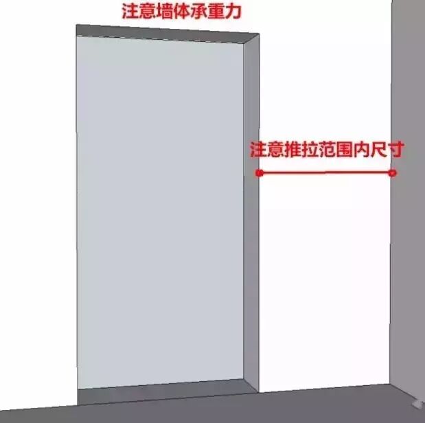 3.测量外挂推拉门时,要考虑墙面的宽度是不是有推拉的余地,推拉范围内是否会放置阻碍推拉的物件等。