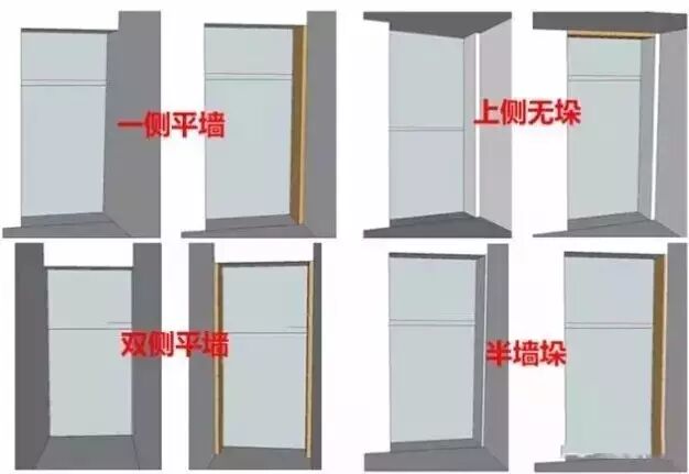 1.一侧平墙、两侧平墙或者上无墙垛,测量时要刨去加墙垛的尺寸。定制了一般宽度的脸线,则可考虑一侧加两层大芯板。