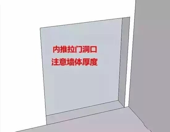 1.测量内推拉门,墙面过薄内推拉门的墙厚其实是有要求的,通常要求墙厚在13公分以上。墙面过薄,可以考虑加厚墙面;如果条件不允许,则木门门套要做13公分以上宽度,脸线增加厚度。