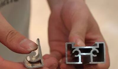 看型材切口 :如果你觉得壁厚不好测量,看型材的横断面颜色是更好的辨别方法了。原生铝颜色发亮 ,是真品,再生铝颜色偏暗偏灰,是假货。
