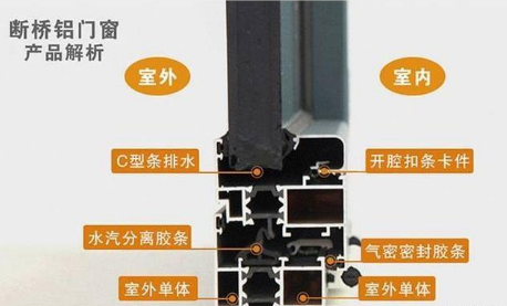 在铝合金型材中间加入导热性能差的材料进行导热阻断,从而达到隔热、保温的效果。在冬季,减少散失的热量;在夏季,减少能量的损失。
