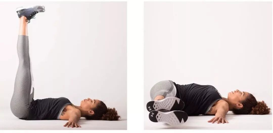 双小腿脚踝夹住小球,慢慢的抬双腿向上