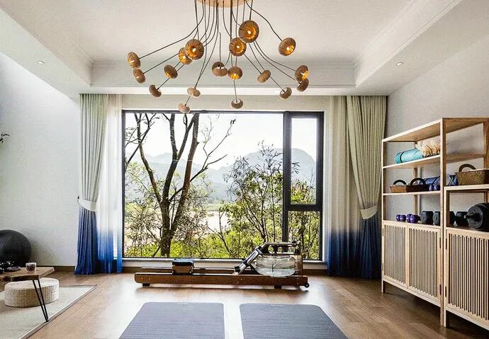 其次,选择落地窗也能更好实现“窗外横山入画”的传统借景手法,并且为能得到好的观景效果,对落地窗的开扇设计也有着一定的要求,合理的开扇设计更能达到好的观景效果。而开扇数量过多把视线分隔,对整体空间效果也有影响。