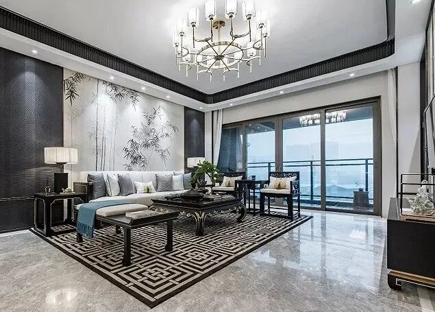 新中式装修讲究设计线条简约流畅,所以在门窗的选择上更多偏向于明亮雅致的落地窗,而非古色古香的雕花小窗。