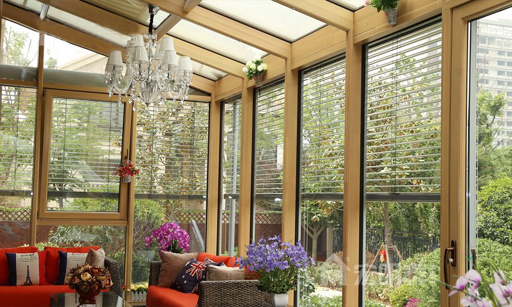 高档阳光房:主架大多采用高端品牌断桥铝,阳光房主体中会加入尼龙66隔热条的填充,保证一定的阳光房隔热性,并且主架尤其是承重梁壁厚一般都在2.0MM以上,保证良好承重性。