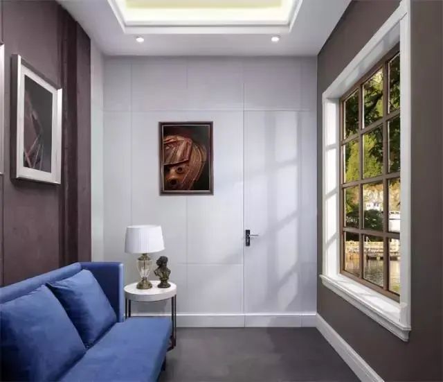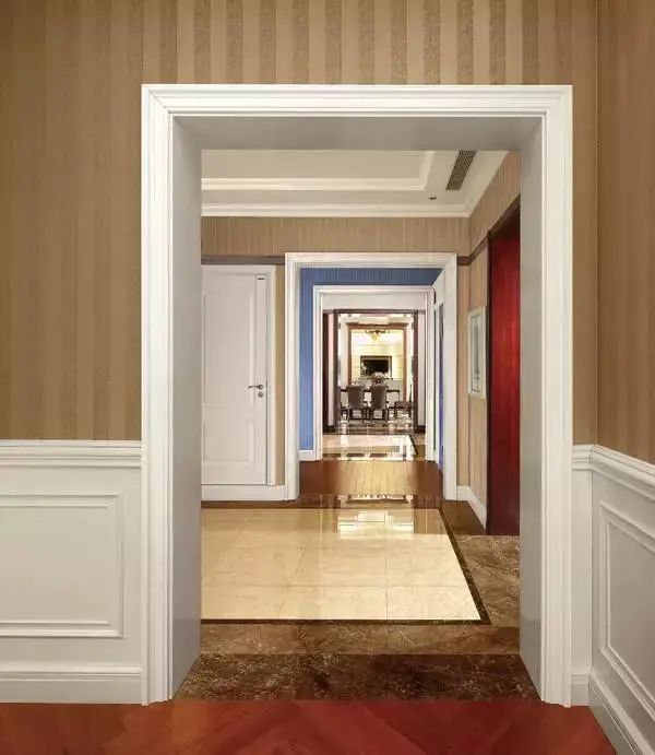 白色的哑口套与护墙板、踢脚线有效地连接起来,将隔断、过渡空间的作用发挥得淋漓尽致。