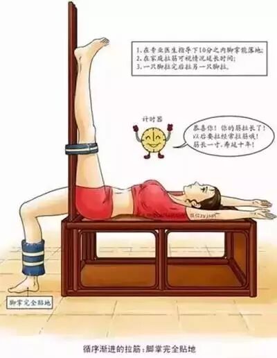 这是最古老的自然拉筋法,其拉筋和疏通经络的部位之多,甚至超过了卧位拉筋法。