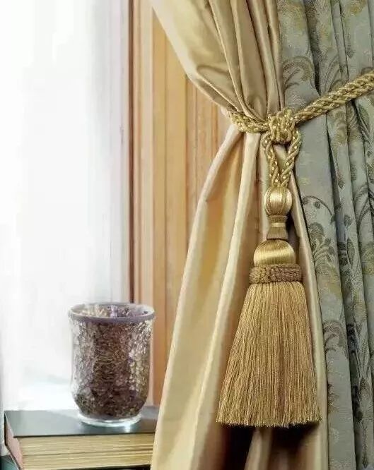 当窗帘不被打开时,堆积到旁边会显得很不清爽,或很累赘的感觉。所以可以用绑带将其固定起来或者将窗帘打开后再用绑带捆扎好也会起到防风造型的作用,更增添家居的多样性和实用性。一般用窗帘布艺的边角料制作。
