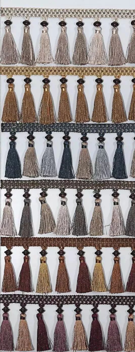 花边式样繁多,使用的位置也比较灵活,可以放在内帘和帘头上,也可以点缀于外帘上面。锦上添花,为主布画龙点睛。