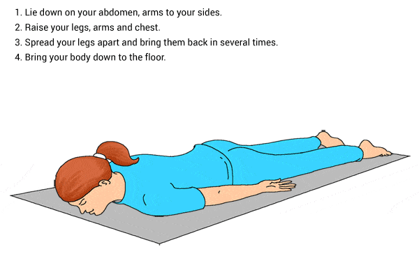 吸气抬起头、胸腔、腹部离地,手臂伸直,保持1分钟