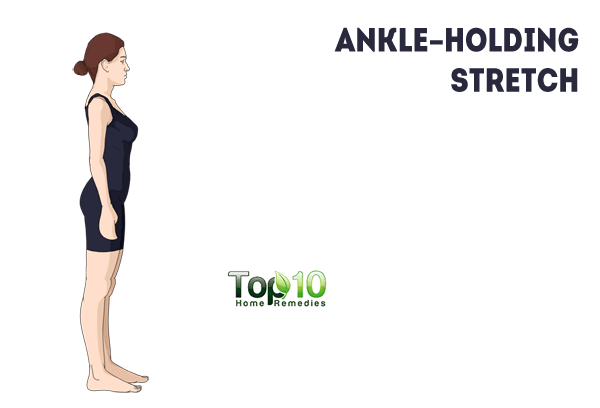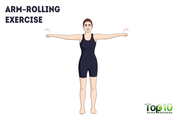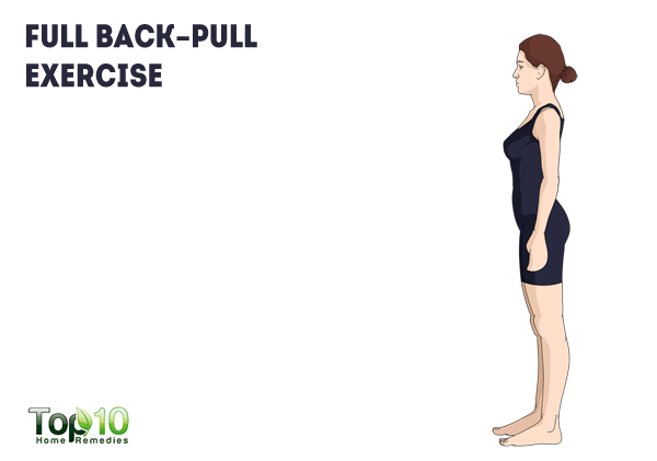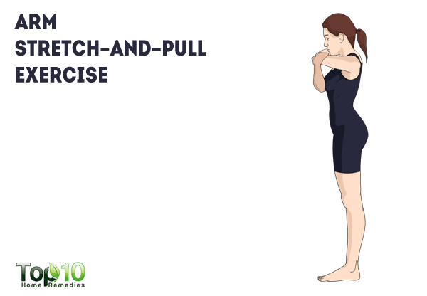 左手放在右臂大臂处将右臂向背部方向拉伸
