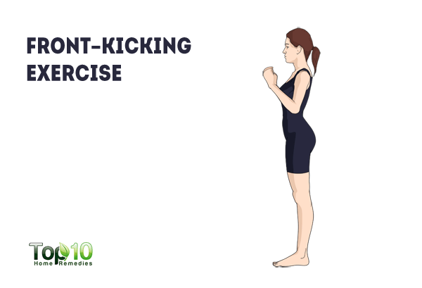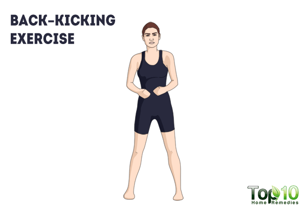 单腿向后踢,脚后跟够轻点臀部,双腿轮流