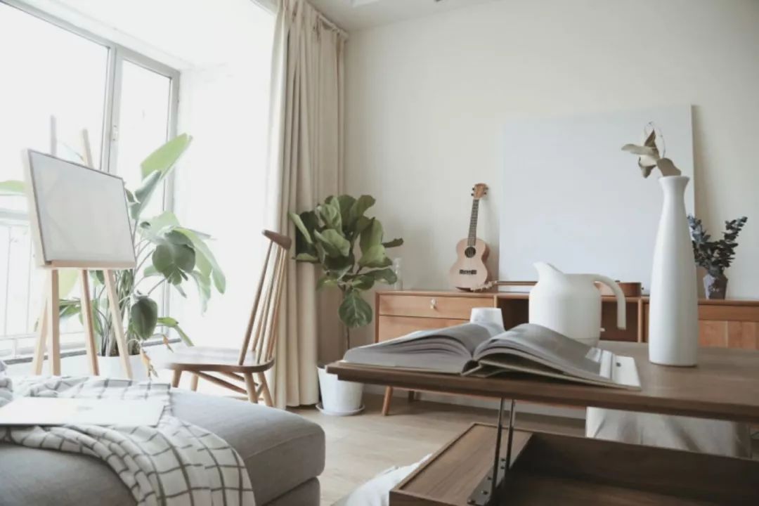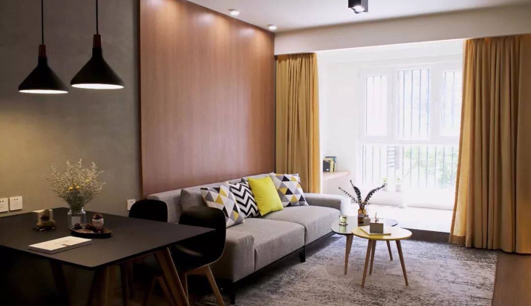 如果客厅原本面积就不大的话,那么就可以把窗帘挂在阳台的窗旁,这样既可以挡光,又能让客厅显得更加宽敞明亮。