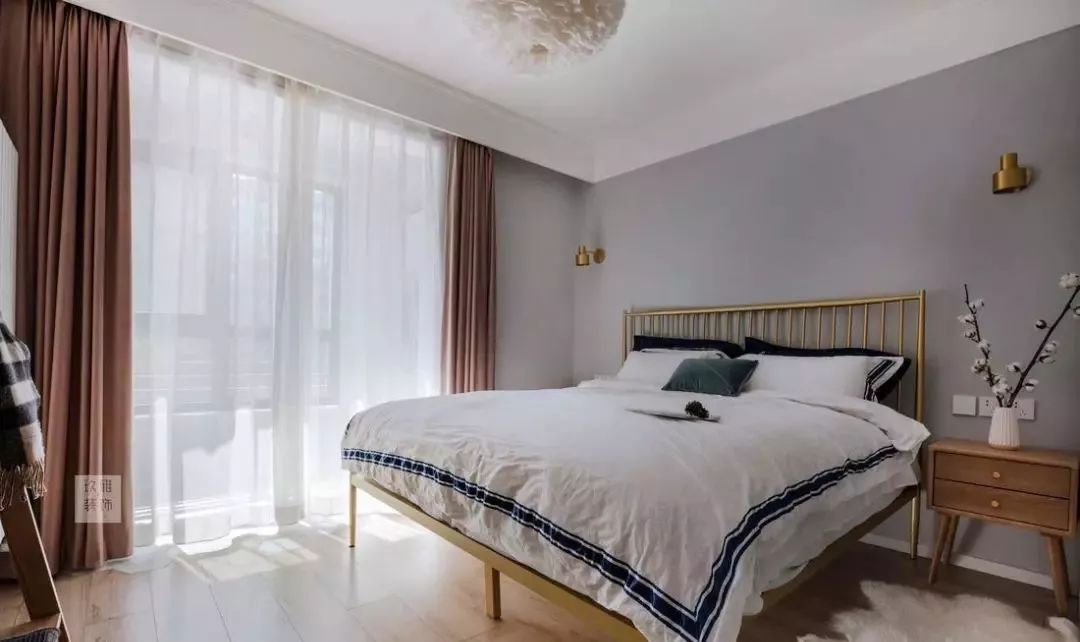 卧室的窗帘更注重功能性,要充分避光以保证睡眠。卧室内窗帘最好选择落地款,以免窗帘过短而漏光。