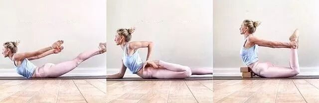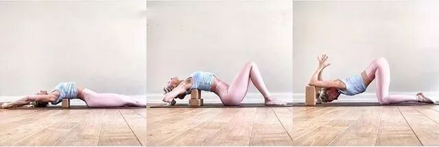 带领胸腔向上打开,在腹部的位置放2块瑜伽砖