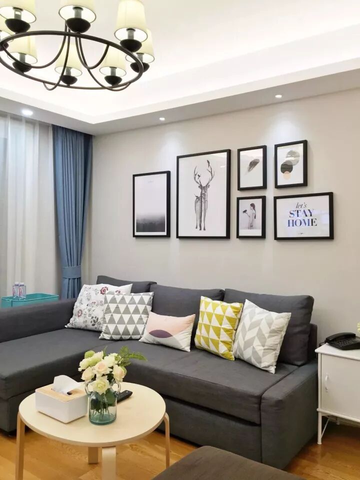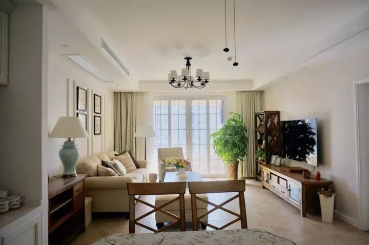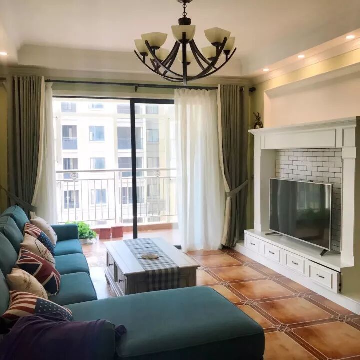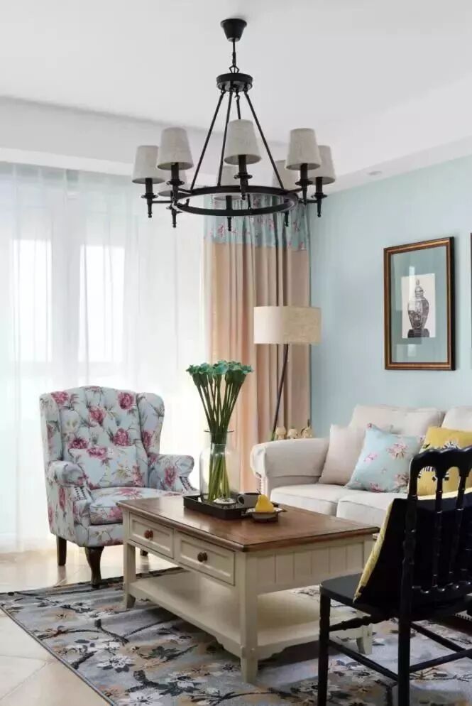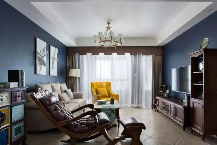 ▼蓝色窗帘,让客厅看起来更具有刚性;