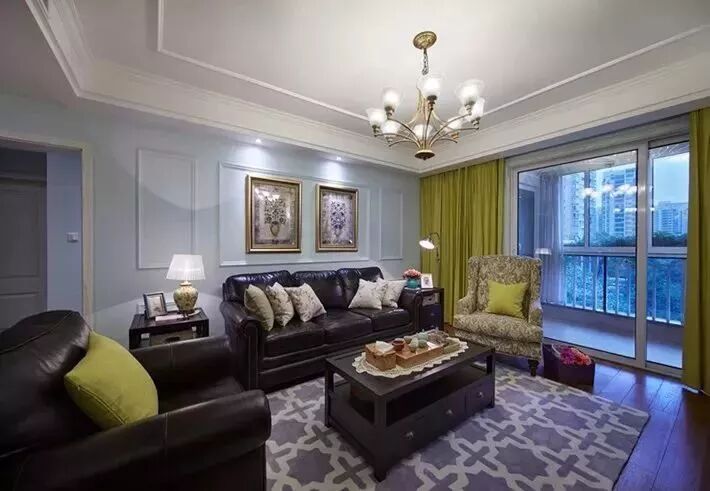 ▼小清新的草绿色窗帘,让这个美式风格的客厅看起来也很小清新;