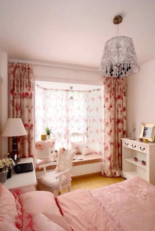 ▲之前也说过亮色系的窗帘有增亮的效果,在工作台(书桌)选用纯白色色的窗帘会有刺眼的感觉,那么窗帘带碎花就再合适不过了。
