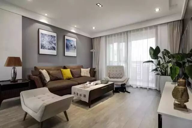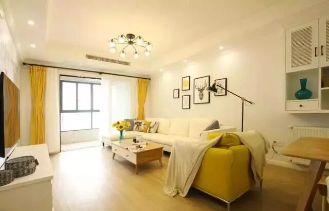 目前比较流行的客厅窗帘做法是一层纱帘和一层窗帘的结合,纱帘通常都是白色的,窗帘也可以选择白色的,这样看起来更有仙气、朦胧的美。