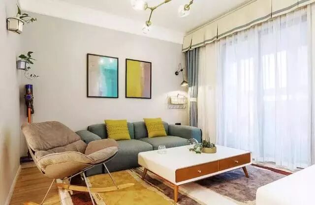 我们在选择窗帘颜色的时候,可以依据客厅的风格来定,比如北欧风就很适合蓝色、灰色等冷色调的,清新而又舒适。