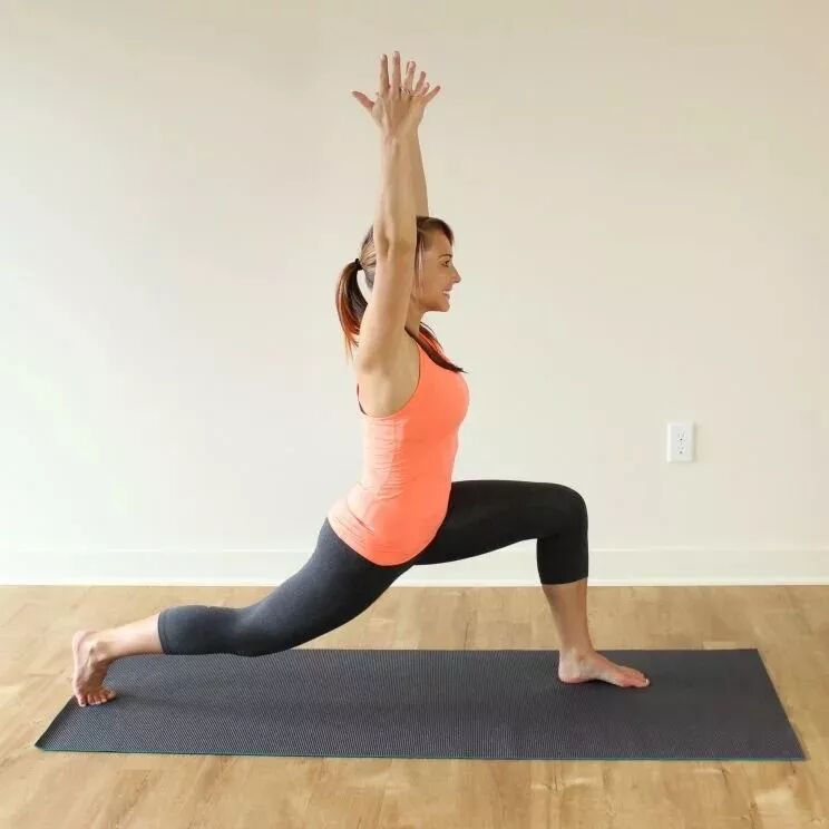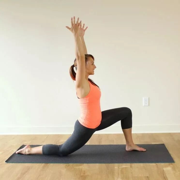 从低弓箭步开始,右腿膝盖离开垫面