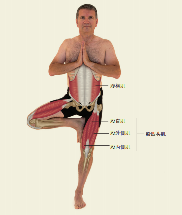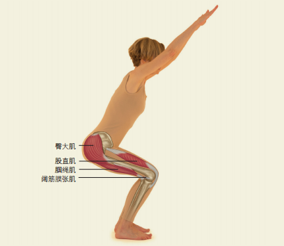 股四头肌位于大腿前侧,是人体主要的伸肌,并且参与到了许多运动中,如走路、跑步、跳跃和踢腿,以及一切能够伸展膝关节的动作。这些肌肉构成了人体中最有力、最强大的肌肉群。它们比自己的拮抗肌—腘绳肌—要强大很多。理想状态下股四头肌应该至少比腘绳肌强大25%,才能够维持膝关节机制的平衡。
