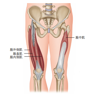 股四头肌由股直肌、股外侧肌、 股内侧肌和股中肌组成。