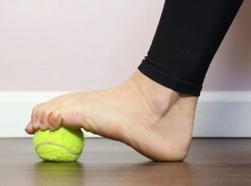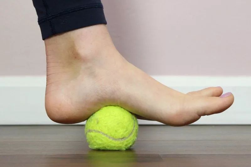 将网球放在足弓的下方