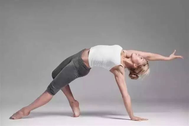 常见体式——桥式,不过要注意的是,双手相扣放在臀部下方,肩膀尽可能往里收,充分打开肩膀。