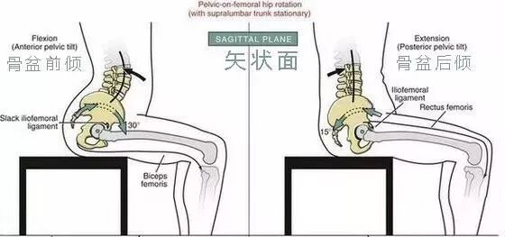 骨盆在矢状面上会发生前倾或者后倾,主要会导致腰椎曲度过弯或者过直,导致髂腰肌紧张或者臀部肌肉紧张,严重的会导致腰痛。