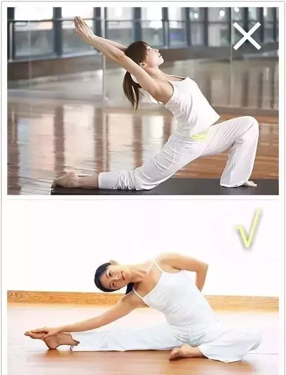 正确的图中你会发现下腹仍然是开放的,但是它的强度减轻了,不上举手臂也不会让下腹变得紧张。
