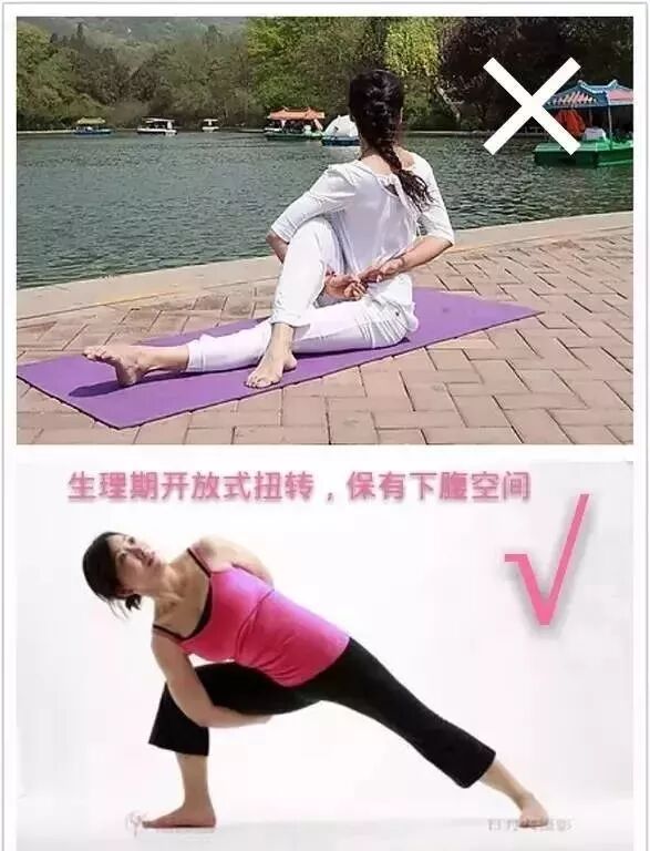 在生理期出于下腹要放松,要减少压力的原理,我们是不做腹部练习的,比如说船式,上伸腿式,这些非常的出力和紧张的体式我们都建议生理期不练习。