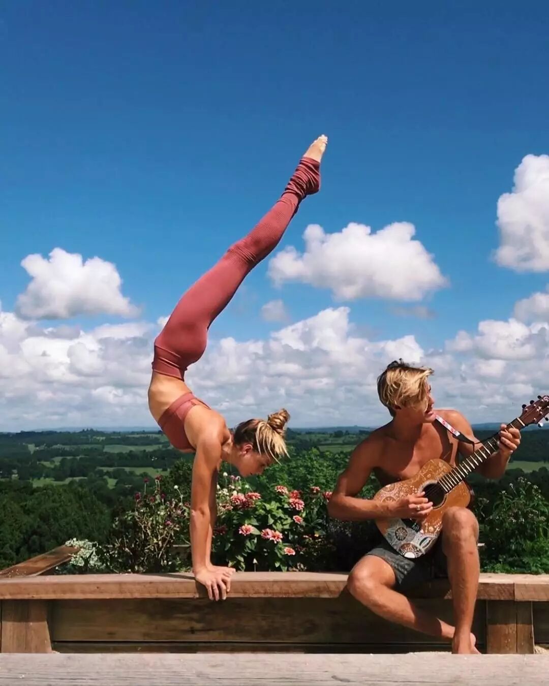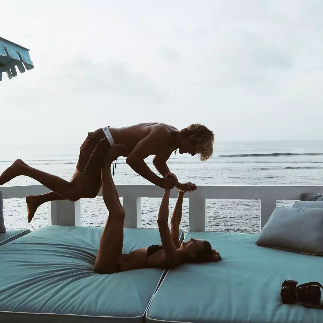 也会和男朋友来个双人瑜伽