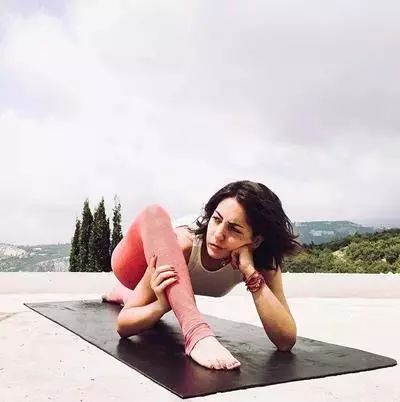 这个动作是八曲式还没全部完成时的姿势,先双肘着地趴在瑜伽垫上,把左腿伸直放在身后,右腿往前迈让右腿能搭在左手的肩膀处,然后我们就可以做下一步完成八曲式的动作了。如果这个动作能够完整的做出来,这个动作可以对全身的就进行锻炼,意思就是这个动作可以消耗全身的脂肪达到瘦身的目的。