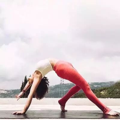 轮式的变式,这个动作需要我们一脚在前一脚在后,然后慢慢的把身体往后仰,两只手掌接触到地面,然后再慢慢抬起左手,这样两只脚和右手三点之间形成一个正三角形,这样可以保证身体不会摇摆。这个动作对背部的锻炼效果非常好,还可以帮助消除脖子上产生的细纹。
