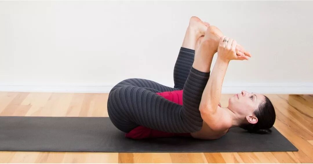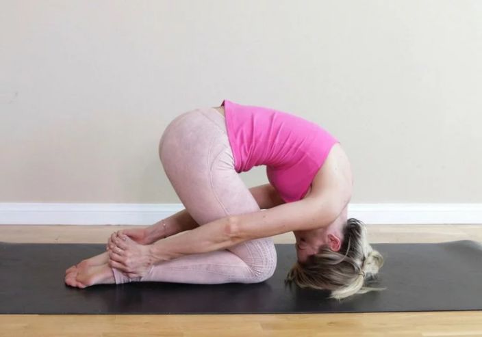 双手抱住小腿前侧,尽量将双腿拉向身体