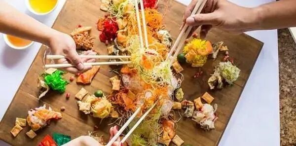 南方一些地区,有在这天“捞鱼生”的习俗。捞鱼生时,往往多人围满一座,把鱼肉、配料与酱料倒在大盘子里,大家站起身挥动筷子,将鱼料捞动,口中还要不断喊到:“捞啊,捞啊!发啊,发啊!”而且要越捞越高,以示步步高升。