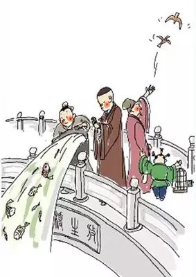 明代刘侗在《帝京景物略》中记载说:“正月八日,石磴巷放生,笼禽雀、盆鱼虾、筐螺蚌,罗堂前,僧做梵语,数千相向,纵羽空飞,孽着落屋上,移时乃去,水之类投皇城金水河中网罟笋饵所希至。”