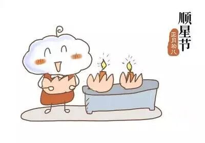 民间以正月初八为众星下界之日,制小灯燃而祭之,称为顺星,也称“祭星”、“接星”。