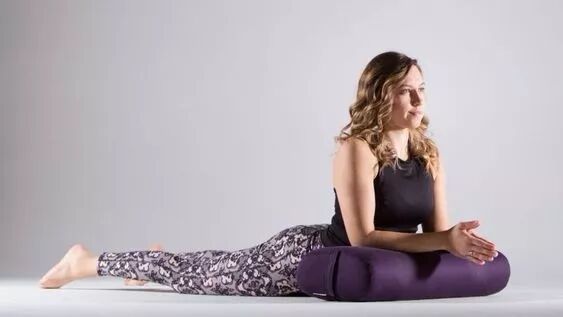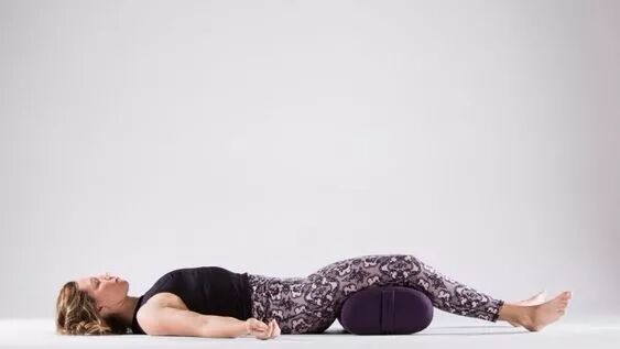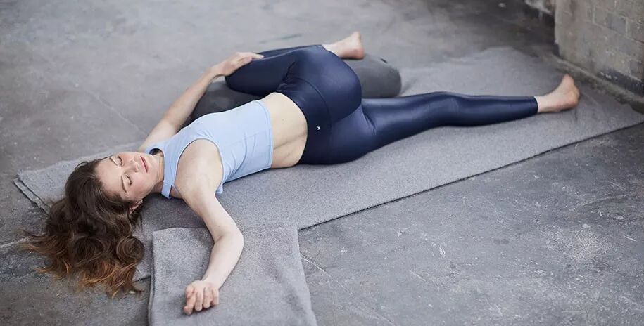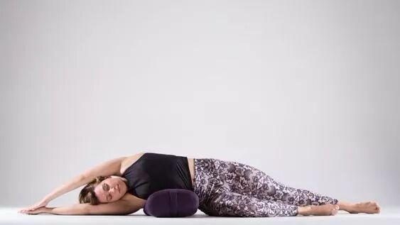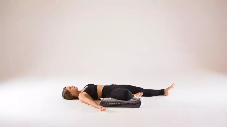 将瑜伽抱枕瑜伽毯放在身体的右侧