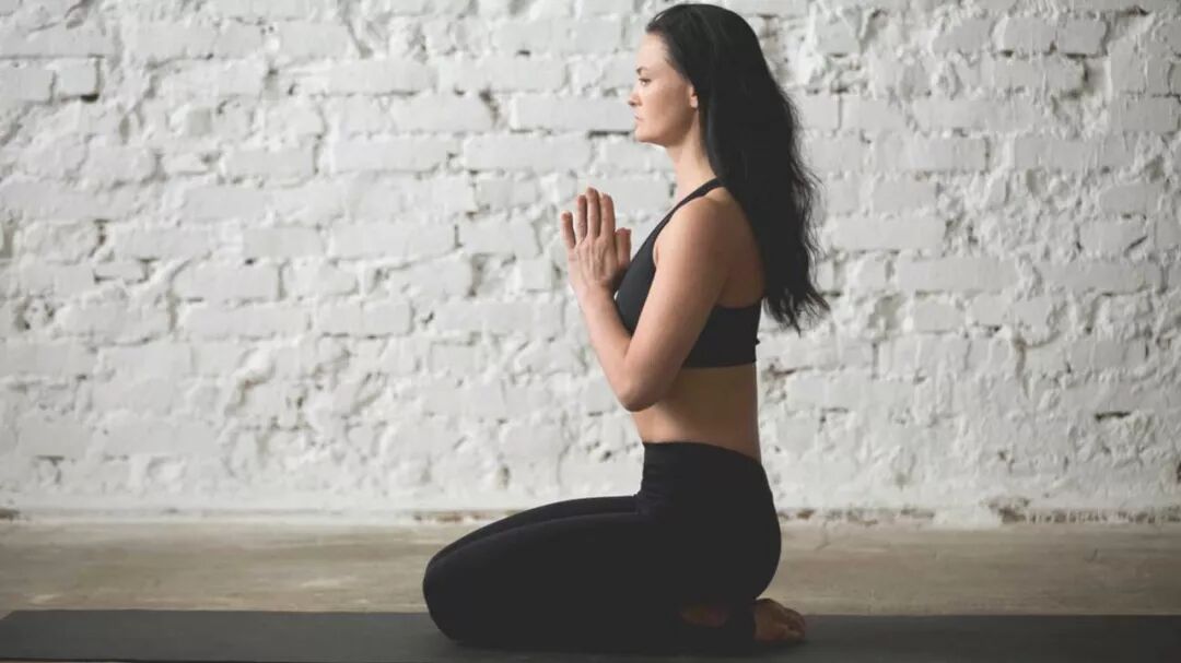 臀部坐在脚后跟上,双膝打开略大于髋部