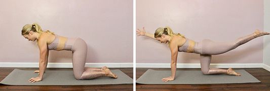 跪立在垫面上,双手臂向前伸展